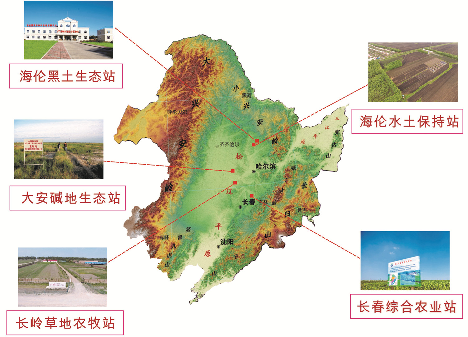 東北地理所構建了以海倫國家生態(tài)站為核心的中國科學院東北農業(yè)監(jiān)測網絡,包括:中國科學院海倫農業(yè)生態(tài)實驗站(黑龍江海倫農田生態(tài)系統(tǒng)國家野外科學觀測研究站)、中國科學院大安堿地生態(tài)試驗站、中國科學院長嶺草地農牧生態(tài)研究站、中國科學院海倫水土保持監(jiān)測站、中國科學院長春綜合農業(yè)試驗站,形成了覆蓋東北主要糧食產區(qū)的農業(yè)生態(tài)系統(tǒng)野外長期定位觀測網絡。