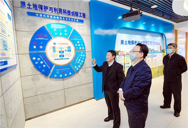 景俊海說,長期以來,中科院東北地理所緊密結(jié)合東北農(nóng)業(yè)發(fā)展實(shí)際,聚焦農(nóng)業(yè)科技難題,深入攻堅(jiān)、持續(xù)創(chuàng)新,做了大量超前研究和細(xì)致工作,在加快吉林現(xiàn)代農(nóng)業(yè)建設(shè)進(jìn)程中發(fā)揮了舉足輕重作用。希望中科院東北地理所聚焦吉林經(jīng)濟(jì)社會發(fā)展需求,著眼“新農(nóng)業(yè)”發(fā)展方向,緊緊圍繞耕地和種子兩個(gè)關(guān)鍵要素,進(jìn)一步推進(jìn)生物育種、耕作保護(hù)、智慧農(nóng)業(yè)等領(lǐng)域科技創(chuàng)新,持續(xù)提高科研效能,不斷取得新的更大成果。要堅(jiān)持創(chuàng)新引領(lǐng),大力推進(jìn)“黑土糧倉”科技會戰(zhàn),加大生物育種、耕作技術(shù)等領(lǐng)域科技攻關(guān)力度,有效推進(jìn)黑土地?cái)?shù)量、質(zhì)量、生態(tài)“三位一體”保護(hù),因地制宜推廣梨樹模式,既充分利用秸稈資源,又有效增強(qiáng)土壤肥力;著力建設(shè)一流創(chuàng)新平臺,吸引培養(yǎng)更多素質(zhì)高、業(yè)務(wù)強(qiáng)的農(nóng)業(yè)技術(shù)人才。要堅(jiān)持技術(shù)集成,促進(jìn)育種與耕種、工程與生物、農(nóng)機(jī)與農(nóng)藝、用地與養(yǎng)地相結(jié)合,大力推廣成熟易行的耕作技術(shù),多措并舉推動糧食穩(wěn)產(chǎn)增產(chǎn)。要堅(jiān)持分區(qū)施策,以生態(tài)方法治理利用鹽堿地,能夠原狀利用的要科學(xué)選種、精耕細(xì)作,需要改良利用的要精準(zhǔn)研判、綜合治理,力爭以最小投入達(dá)到最佳效果。要堅(jiān)持夯實(shí)基礎(chǔ),持續(xù)加強(qiáng)高標(biāo)準(zhǔn)農(nóng)田建設(shè),結(jié)合“大水網(wǎng)”工程、萬里綠水長廊、林草濕生態(tài)連通工程實(shí)施,進(jìn)一步提升田間設(shè)施配套能力,盡快實(shí)現(xiàn)地平整、土肥沃、田成方、林成網(wǎng)、路相通、渠相連。要堅(jiān)持多方參與,進(jìn)一步加強(qiáng)創(chuàng)新模式研究,更好調(diào)動農(nóng)民和企業(yè)積極性,有效促進(jìn)適度規(guī)模經(jīng)營,助力吉林加快現(xiàn)代農(nóng)業(yè)建設(shè)、率先實(shí)現(xiàn)農(nóng)業(yè)現(xiàn)代化。