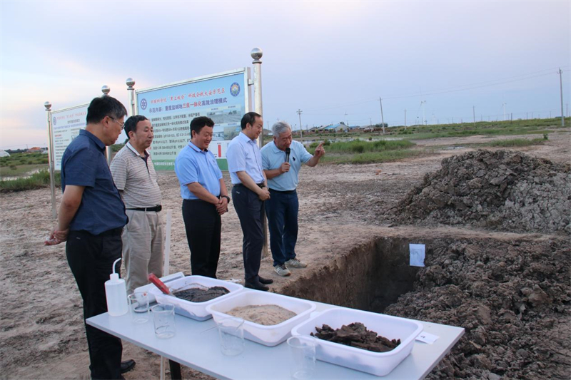 慰問(wèn)調(diào)研期間,李和風(fēng)一行考察了大安堿地生態(tài)試驗(yàn)站及“黑土糧倉(cāng)”科技會(huì)戰(zhàn)大安示范區(qū)示范田,大安堿地生態(tài)試驗(yàn)站站長(zhǎng)梁正偉研究員詳細(xì)介紹基本情況與工作進(jìn)展。
