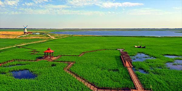 濕地公園里,蘆葦成片,一望無際,整個濕地公園基本處于原生狀態(tài),“春來葦葉綠,秋到蘆花黃”的蘆葦濕地美景也是北方少見的。