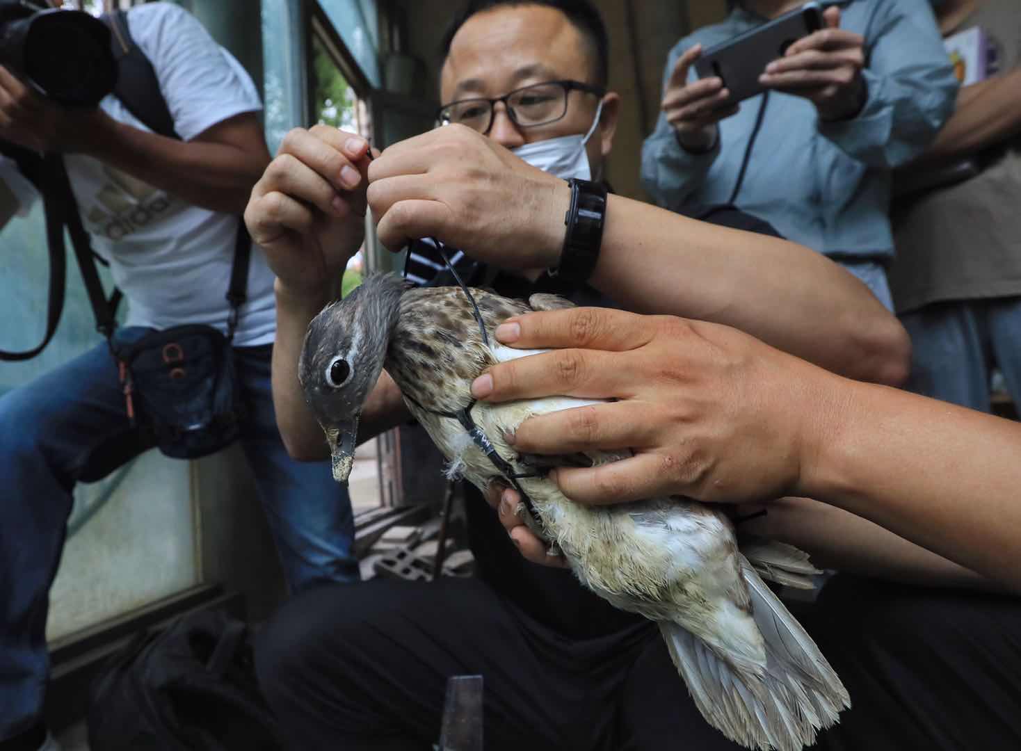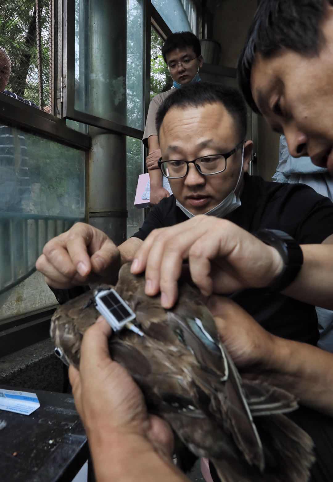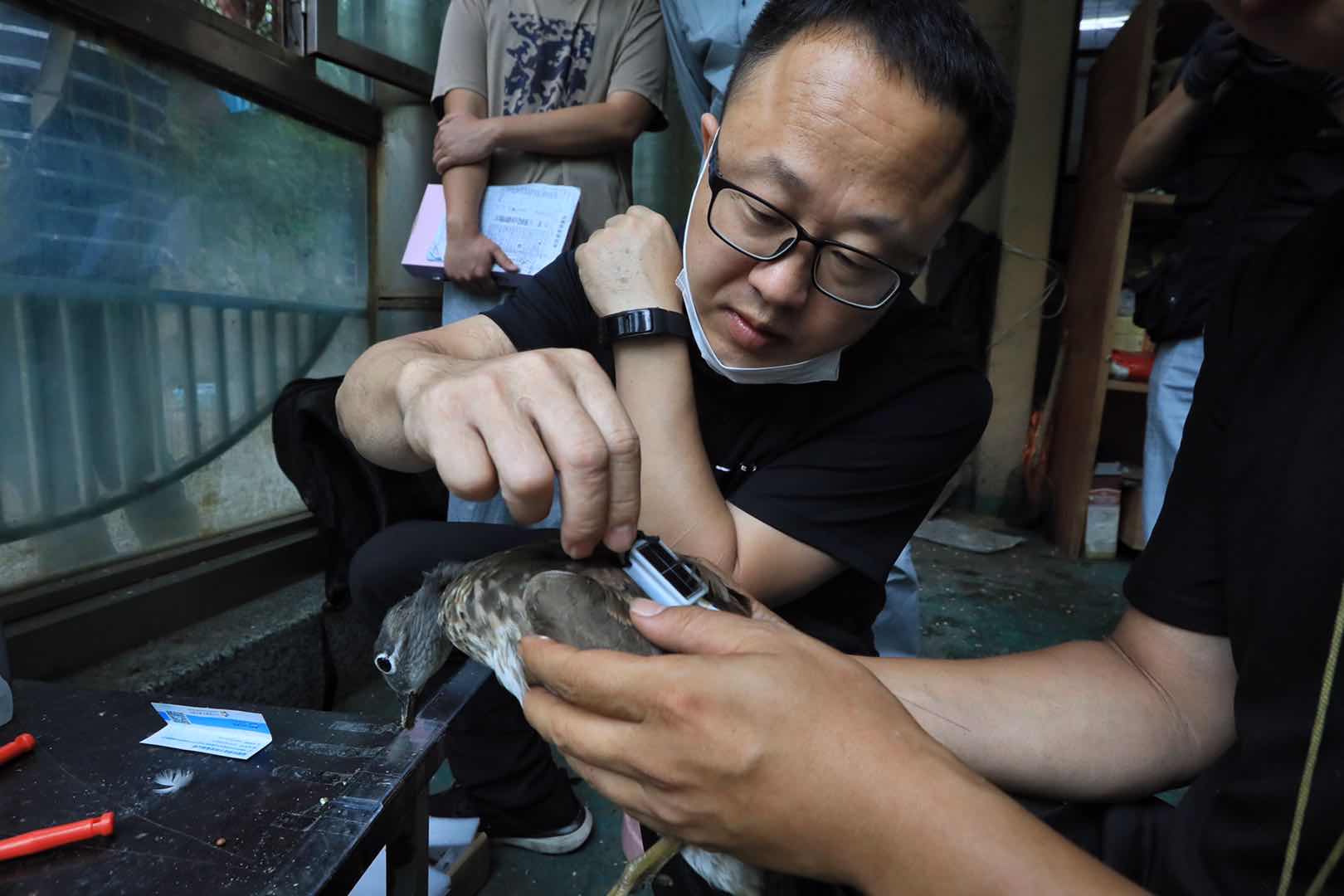 今夏,哈爾濱市兆麟公園內(nèi),南遷而來的鴛鴦共跳巢20窩,出生幼仔185只,創(chuàng)造了歷史紀錄。為了配合東北濕地鳥類監(jiān)測項目,弄清兆麟公園鴛鴦的遷徙情況,8月7日,中科院東北地理與農(nóng)業(yè)生態(tài)研究所的副研究員王強與車春虎等鴛鴦志愿者一道,給南遷而來的鴛鴦戴上鳥類衛(wèi)星追蹤器。在戴追蹤器之前,王強與車春虎給鴛鴦測量了體重、身高、翅長等基本數(shù)據(jù)。