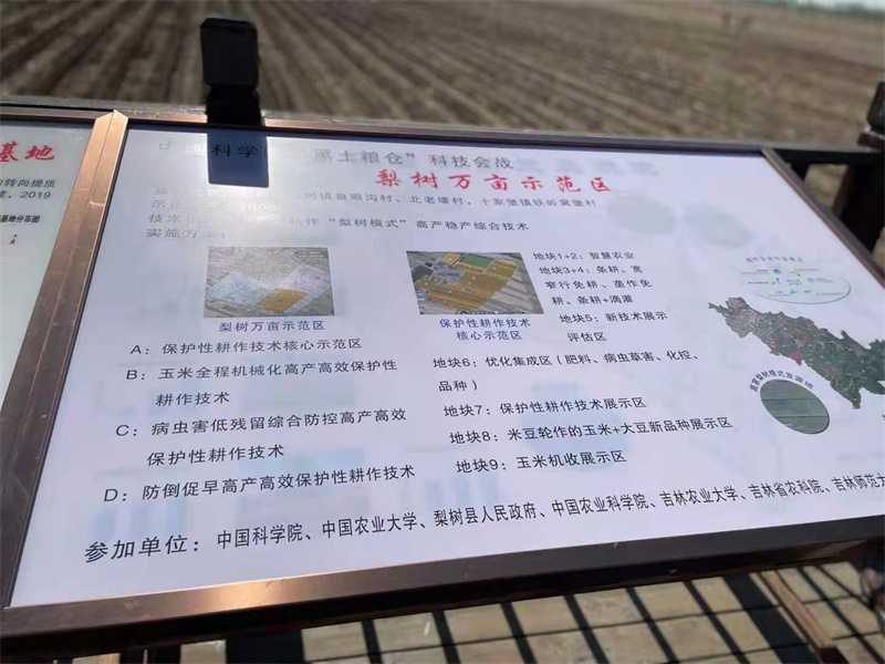 2010年由中科院沈陽(yáng)應(yīng)用生態(tài)研究所牽頭發(fā)起,吉林梨樹(shù)縣農(nóng)業(yè)技術(shù)推廣總站、中科院東北地理與農(nóng)業(yè)生態(tài)研究所、吉林省土壤肥料工作總站4個(gè)單位組成的中科院東北黑土地保護(hù)性耕作試驗(yàn)示范基地,在吉林梨樹(shù)縣梨樹(shù)鎮(zhèn)高家村正式掛牌。這一年中國(guó)農(nóng)業(yè)大學(xué)李保國(guó)團(tuán)隊(duì)加盟一起研究示范,在梨樹(shù)縣泉眼溝村建立保護(hù)性耕作技術(shù)研發(fā)基地。
