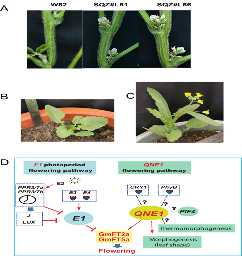 新型大豆生育期基因QNE1的功能驗(yàn)證與分子模型?圖片由受訪者提供