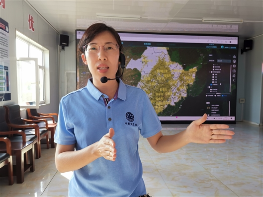 中國科學(xué)院地理科學(xué)與資源研究所副研究員付晶瑩向記者介紹黑土地星空地網(wǎng)農(nóng)情監(jiān)測與智能管控系統(tǒng)。倪思潔攝