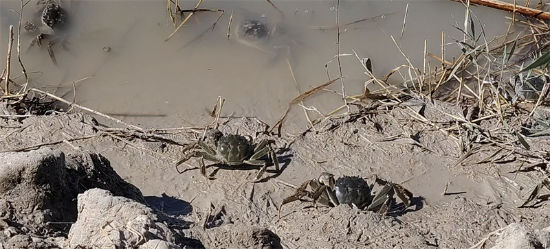 保護與開發(fā)并行。昔日鹽堿地,如今養(yǎng)得活大螃蟹。河蟹取食雜草、低質(zhì)魚蝦、害蟲,自然生長;攝食的同時,疏松土壤,糞便肥田。