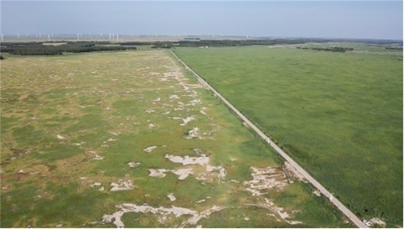 圖為未經(jīng)改良的鹽堿地與已改良好的鹽堿地 資料圖片