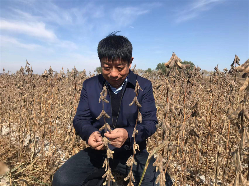 在積極找尋適合鹽堿地種植的作物品種時,大豆新品種——“東生118”引起了他的注意。“去年在一個小面積種,我覺得它的品質(zhì)和抗性都很好,所以我跟馮教授說今年將大面積種。現(xiàn)在你看到了這個白花花的鹽堿地,堿面子特別的大,但是這個品種整個植株筆挺、籽粒飽滿,懂農(nóng)業(yè)的人一搭眼就能看到,這一定是個好品種,所以我們對它很有信心。”