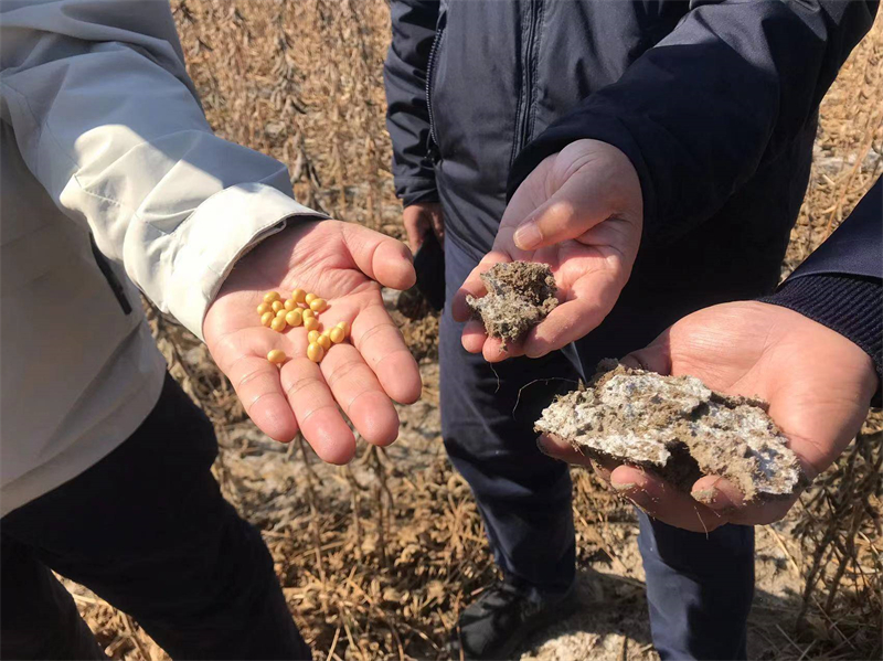 十月,中科院長嶺草地農(nóng)牧生態(tài)研究站迎來收獲的季節(jié)。科研人員指導當?shù)剞r(nóng)戶種植在覆沙改良的鹽堿地上種植玉米、大豆等作物,經(jīng)過測產(chǎn),喜獲豐收:“經(jīng)過我們在三個地塊的取樣,經(jīng)過我們鹽堿地改良之后所種植的大豆它的畝產(chǎn)量是211.08公斤;我們324水肥一體化管理模式的玉米產(chǎn)量是871.31.生產(chǎn)效果比較顯著......”