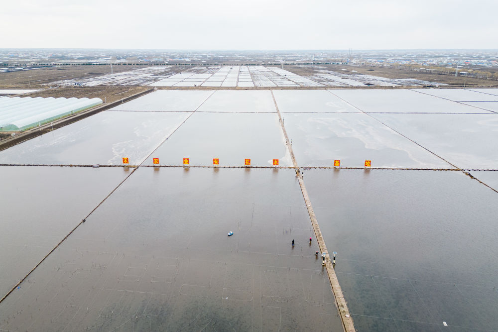 在黑龍江省慶安縣國(guó)家現(xiàn)代農(nóng)業(yè)產(chǎn)業(yè)園,農(nóng)民在清理稻田(無(wú)人機(jī)照片,4月26日攝)。新華社記者 張濤 攝