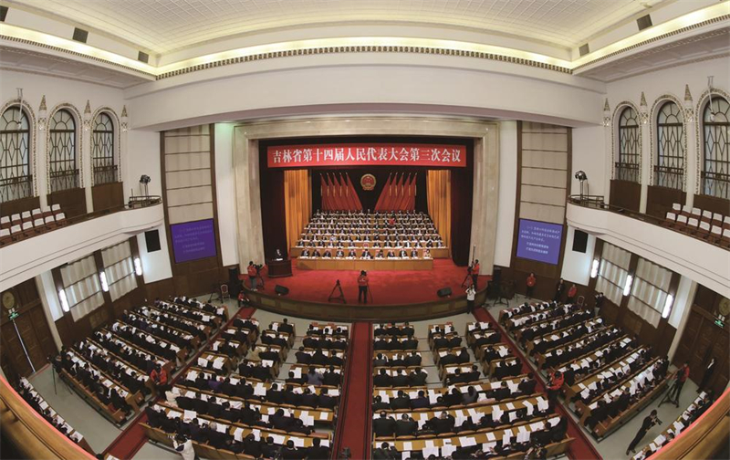 1月24日,省十四屆人大三次會(huì)議在長春開幕。圖為大會(huì)會(huì)場(chǎng)。