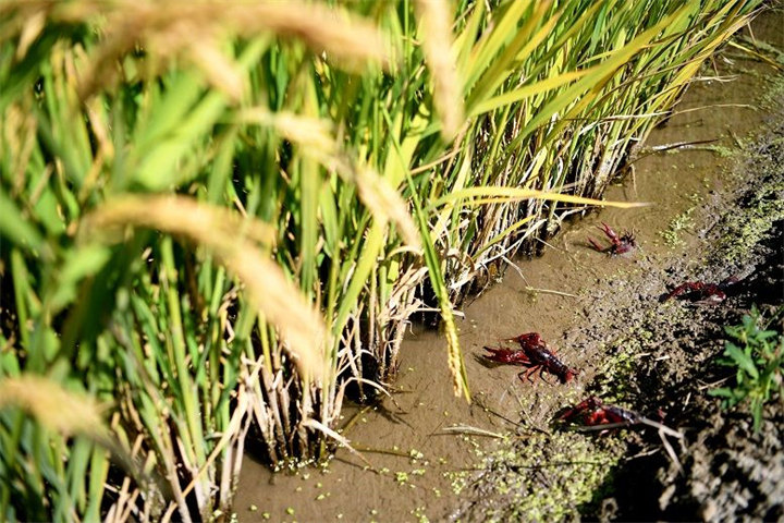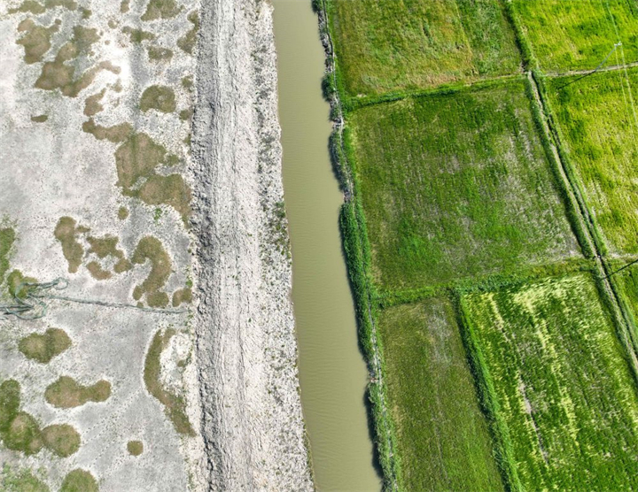 由鹽堿地改良而成的河北樂(lè)亭縣數(shù)字循環(huán)農(nóng)業(yè)智慧園區(qū)稻蝦共生區(qū) 牟宇 / 攝