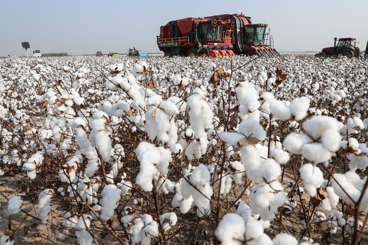 2023 年 10 月 22 日,黃河三角洲鹽堿地棉花機(jī)采作業(yè)忙 朱崢 / 攝