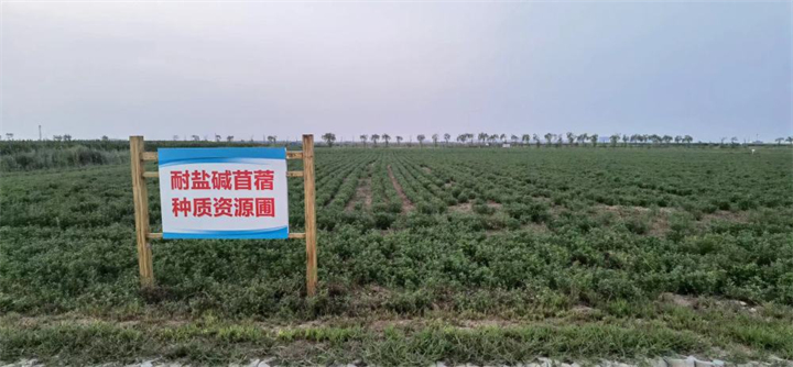 山東省東營(yíng)市的黃河三角洲農(nóng)高區(qū)內(nèi),收集了大量耐鹽堿苜蓿的種質(zhì)資源 葉婧 / 攝