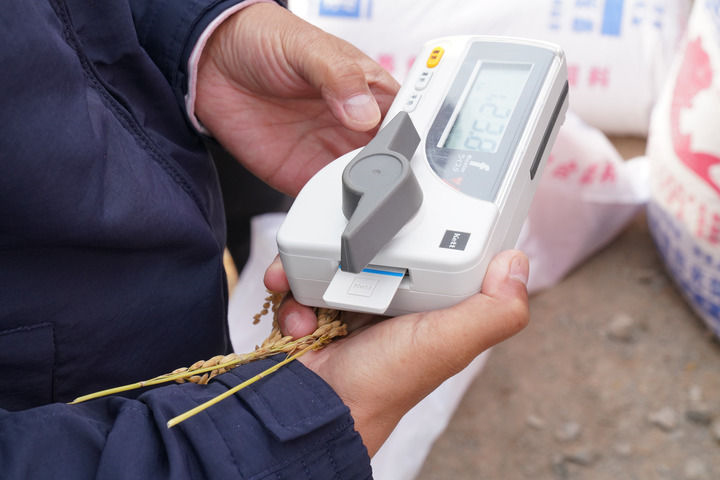 專(zhuān)家在黑龍江肇東東升村檢測(cè)耐鹽堿水稻的水分含量 王松 / 攝