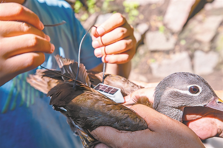 為兩只成年鴛鴦安裝衛(wèi)星追蹤器