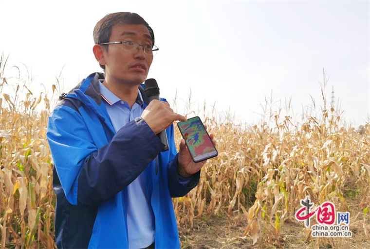 圖為中國科學(xué)院東北地理與農(nóng)業(yè)生態(tài)研究所研究員劉煥軍展示黑土地天空地立體監(jiān)測技術(shù)與平臺APP。中國網(wǎng) 王振紅攝