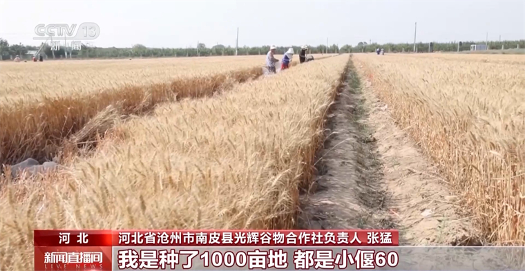 河北省滄州市南皮縣光輝谷物合作社負(fù)責(zé)人 張猛:我種了1000畝地,都是“小偃60”,這個(gè)品種抗鹽堿、抗旱,抗倒伏,產(chǎn)量挺高,畝產(chǎn)達(dá)到1000多斤沒(méi)問(wèn)題。