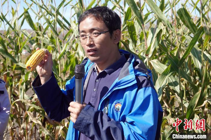 友誼農(nóng)場一處玉米示范地里,劉煥軍研究員接受媒體采訪介紹“三江模式”。中新網(wǎng)記者 孫自法 攝