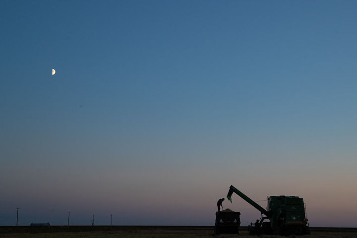 2024年10月11日,在位于黑龍江省鶴崗市綏濱縣的北大荒集團(tuán)普陽農(nóng)場有限公司作業(yè)區(qū),種植戶駕駛農(nóng)機(jī)進(jìn)行收割作業(yè)。新華社記者張濤攝