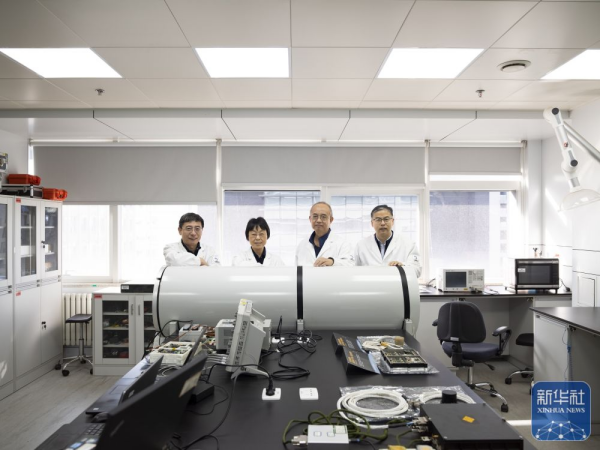 1月14日在中國科學院地質(zhì)與地球物理研究所火星磁強計研發(fā)實驗室拍攝的“火星多時間尺度環(huán)境演變”研究團隊部分成員杜愛民、陳凌、秦小光、張金海(從左至右)。“火星多時間尺度環(huán)境演變”研究成果獲基礎研究獎。