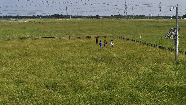 “我們?cè)?0000余份優(yōu)質(zhì)羊草種質(zhì)資源中,篩選出63份具備植株高大、種子產(chǎn)量高、耐鹽堿性強(qiáng)的羊草種質(zhì)在這里進(jìn)行擴(kuò)繁試驗(yàn)。”中國(guó)科學(xué)院東北地理與農(nóng)業(yè)生態(tài)研究所研究員馬紅媛介紹。羊草是松嫩平原上的一個(gè)原始優(yōu)勢(shì)物種,其地下根莖可延伸至2米以上,能夠形成密集的植被網(wǎng)絡(luò),有效防風(fēng)保濕固沙,起到很好的草原生態(tài)修復(fù)作用。