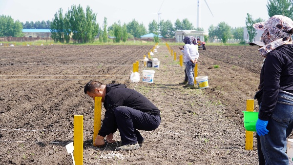 近日,記者在洮北區(qū)青山草場(chǎng)的羊草種子擴(kuò)繁基地看到,科研人員量地塊、分種子、做標(biāo)記,工作人員則將不同標(biāo)號(hào)的種子播撒在不同地塊,一道道工序有條不紊。