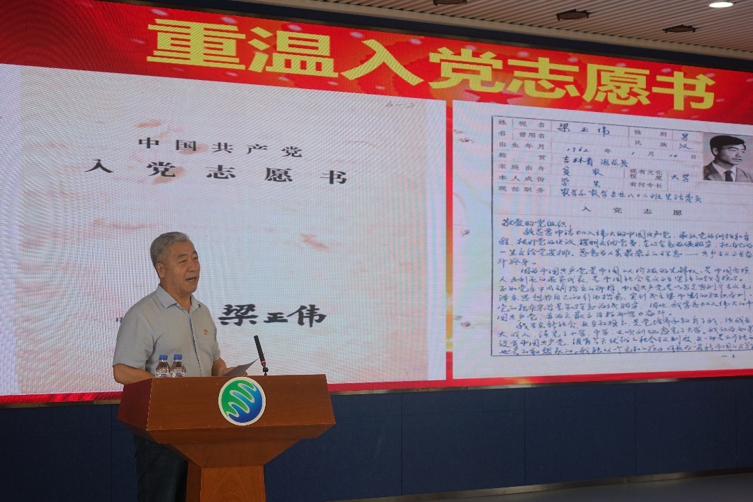 在重溫入黨志愿書環(huán)節(jié),由梁正偉研究員、馮獻(xiàn)忠研究員和肖路同學(xué)分別代表不同年齡段,不同時(shí)期入黨的共產(chǎn)黨員,重溫他們的入黨志愿書,與大家共同追憶初心使命。