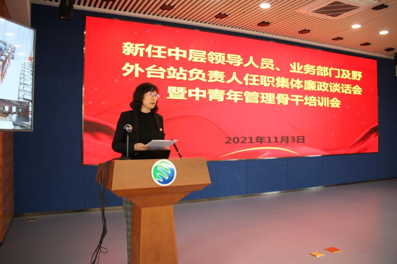 黨委書(shū)記蘇陽(yáng)代表所黨委與中層干部作集體廉政談話,并對(duì)中層干部進(jìn)行了上崗專題培訓(xùn)。他以“守住底線 銳意進(jìn)取 創(chuàng)先爭(zhēng)優(yōu)——做忠誠(chéng) 干凈 擔(dān)當(dāng) 履職盡責(zé)的黨的好干部”為題作專題報(bào)告。他從年齡結(jié)構(gòu)、學(xué)歷結(jié)構(gòu)、專業(yè)背景、政治面貌等方面對(duì)新任職中層干部整體情況進(jìn)行了全面梳理。他指出,這次調(diào)整按“精兵簡(jiǎn)政、按需設(shè)崗、雙向選擇、競(jìng)爭(zhēng)上崗”的原則,堅(jiān)持把政治標(biāo)準(zhǔn)放在首位,選拔聘用又紅又專的干部,為更多專業(yè)背景好同時(shí)具有一定管理能力的優(yōu)秀的年輕人提供了鍛煉機(jī)會(huì)。他進(jìn)一步闡述了廉政談話的目的和意義,對(duì)中層干部提出廉潔從政的具體要求,并結(jié)合習(xí)近平總書(shū)記在2021年秋季學(xué)期中央黨校(國(guó)家行政學(xué)院)中青年干部培訓(xùn)班開(kāi)班式上發(fā)表的重要講話精神,對(duì)中層干部強(qiáng)化責(zé)任意識(shí)、履職擔(dān)當(dāng)提出五點(diǎn)要求:一要加強(qiáng)政治理論學(xué)習(xí),二要有崇高理想和堅(jiān)定信念,三要堅(jiān)持一切從實(shí)際出發(fā),四要敢擔(dān)當(dāng)、善作為,堅(jiān)持斗爭(zhēng)精神,五要講規(guī)矩、守底線。