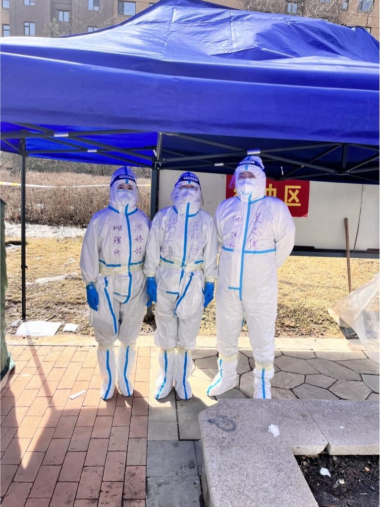 征集志愿者時(shí),東北地理所黨委副書記、紀(jì)委書記王曉慧主動(dòng)請纓、積極參戰(zhàn)。今天,她以一名普通黨員的身份奔赴疫情防控“最前沿”,帶領(lǐng)兩位年輕黨員方婷婷、吳志偉身穿白色“戰(zhàn)衣”,下沉凈月中信社區(qū)開展疫情防控工作。大家克服困難,并肩作戰(zhàn),堅(jiān)決服從社區(qū)防疫工作統(tǒng)一安排,積極協(xié)助社區(qū)開展現(xiàn)場及入戶掃描吉祥碼、核酸檢測樣品收集、核酸檢測登記等工作。通過掃碼、測溫、登記等細(xì)微的志愿服務(wù)工作,他們用自己的實(shí)際行動(dòng)詮釋一名共產(chǎn)黨員的初心和使命,也體會(huì)到一線醫(yī)務(wù)和社區(qū)工作者的辛苦付出,共同構(gòu)筑起疫情防控長效防線,全天累計(jì)協(xié)助社區(qū)為1000余人次檢測核酸。