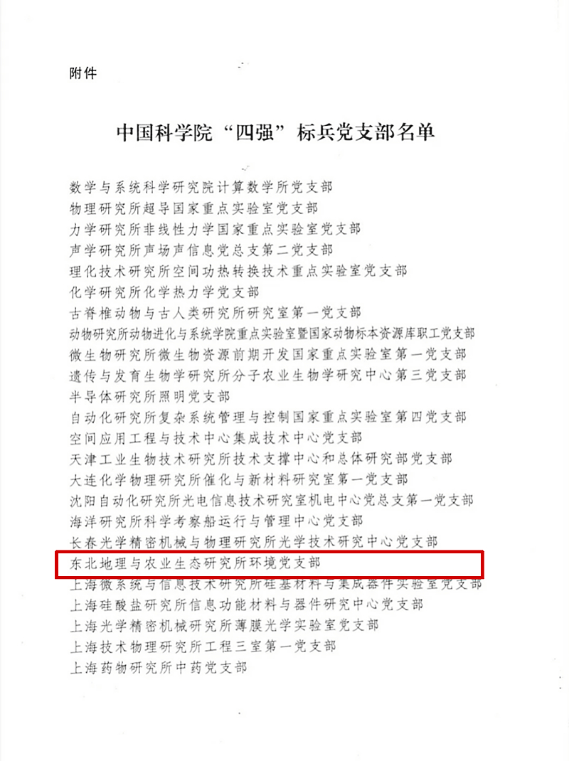 東北地理所環(huán)境黨支部榮獲中國科學院“四強”標兵黨支部稱號