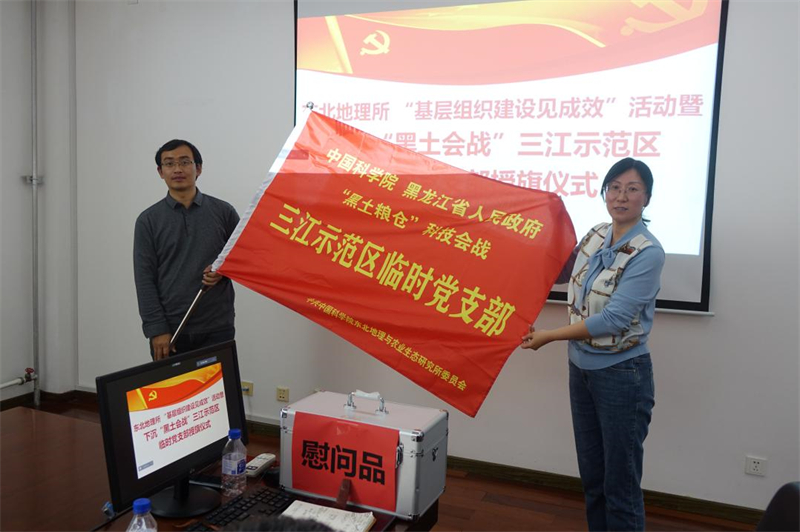 為三江示范區(qū)臨時(shí)黨支部授旗