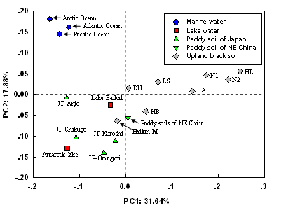 東北地理與農(nóng)業(yè)生態(tài)研究所王光華課題組在基于前期研究稻田土壤T4型噬菌體g23基因基礎(chǔ)上,針對海倫農(nóng)業(yè)生態(tài)實(shí)驗(yàn)站的不同施肥方式的定位實(shí)驗(yàn)土壤樣品,以及從7個(gè)不同緯度黑土農(nóng)田采集的土壤樣品,進(jìn)行了T4型噬菌體g23基因研究工作,成功地獲得了152條噬菌體g23基因。發(fā)現(xiàn)旱地黑土農(nóng)田g23基因分布與其在海洋和湖泊水體環(huán)境中完全不同,與稻田環(huán)境相近,但也有多個(gè)新的黑土類群存在。采用Unifrac方法分析不同環(huán)境條件下的T4型噬菌體群落結(jié)構(gòu)發(fā)現(xiàn),T4型噬菌體在陸地生態(tài)系統(tǒng)較海洋環(huán)境分布廣泛,表明陸地生態(tài)環(huán)境中具有豐富的噬菌體基因資源;另外,從T4型噬菌體在稻田和旱地黑土中群落結(jié)構(gòu)差異明顯,且其在東北稻田與東北旱地黑土中分布相對較近的研究結(jié)果,說明在陸地生態(tài)系統(tǒng)中T4型噬菌體群落結(jié)構(gòu)受到地理環(huán)境和生態(tài)過程的雙重影響。