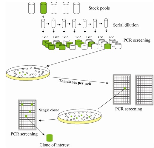 BAC基因文庫(kù)無(wú)論是在植物還是動(dòng)物中是廣為應(yīng)用的一個(gè)工具,對(duì)基因克隆、基因組測(cè)序及功能基因組學(xué)研究中起了重要作用。在后基因組時(shí)代,BAC文庫(kù)對(duì)于基因克隆及有效保存遺傳材料仍有很大的實(shí)用價(jià)值。 傳統(tǒng)的BAC文庫(kù)建立一般需要將相關(guān)克隆一個(gè)一個(gè)置入至96孔或384孔板中保存,對(duì)于基因組的較大的生物則需要有較大的超低溫儲(chǔ)存空間, 同時(shí)其操作亦需要大型移液平臺(tái)(機(jī)器人)等條件。混合BAC基因文庫(kù)(non-gridded BAC library)的制備相對(duì)較為簡(jiǎn)單,可節(jié)省大量的超低溫儲(chǔ)存空間,但是篩選目標(biāo)克隆是一個(gè)技術(shù)難題。本所大豆分子育種團(tuán)隊(duì)夏正俊研究員與日本生物資源研究所合作成功制備了一個(gè)大豆基因組5.2倍的混合BAC基因文庫(kù),并建立一套集系統(tǒng)稀釋、PCR、多克隆混合挑取等實(shí)用技術(shù)為一起的目標(biāo)克隆快速篩選與回收技術(shù)。該技術(shù)理論上適用于所有物種的混合BAC基因文庫(kù)的篩選體系,有助于應(yīng)用技術(shù)手段來(lái)保存重要遺傳資源。