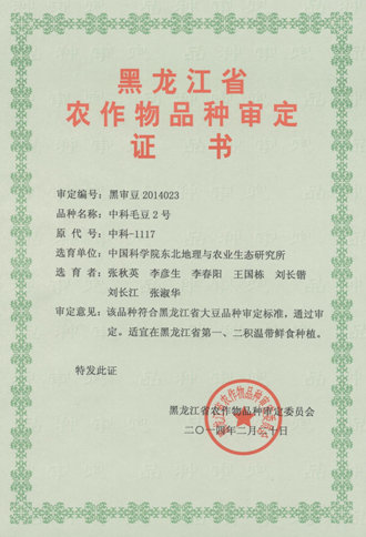 2014年3月4日,由我所張秋英研究員課題組選育的“中科毛豆2號”(登記編號:黑登記2014023)順利通過“黑龍江省農(nóng)作物品種審定委員”的新品種審定,準(zhǔn)予在東北適宜地區(qū)推廣。