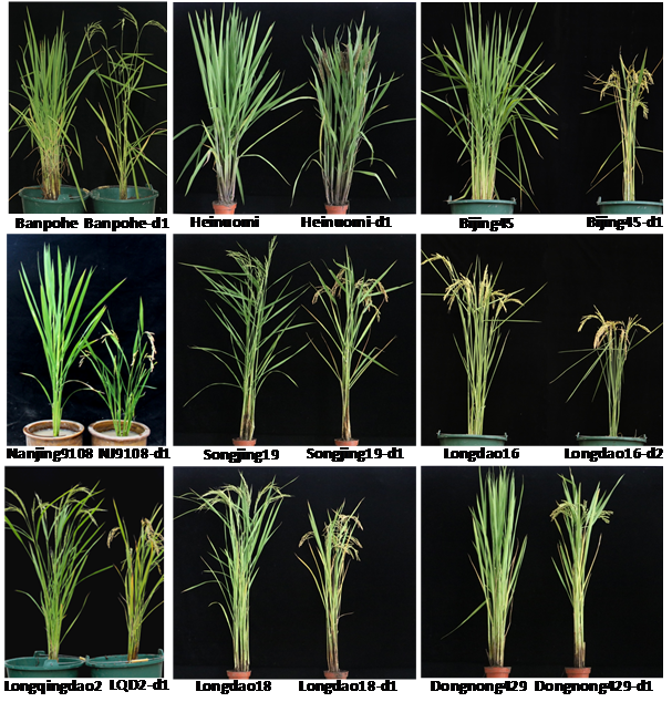 我所水稻分子育種學(xué)科組利用CRISPR/Cas9基因編輯技術(shù)對7個黑龍江省主栽優(yōu)質(zhì)品種、3個南方優(yōu)質(zhì)品種抽穗期基因Hd2、Hd4、Hd5進行了基因編輯,成功培育出早熟穩(wěn)定水稻品系(圖1)。這一研究不僅可以促進黑龍江省主栽品種北移、擴大種植面積,也有助于引進南方優(yōu)質(zhì)水稻資源。與傳統(tǒng)的育種方式相比,這一技術(shù)具有高效、穩(wěn)定、快速等優(yōu)勢,將會更廣泛應(yīng)用于育種中。