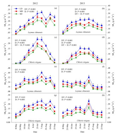 土壤呼吸是草地土壤碳輸出的重要途徑,其變化直接影響土壤肥力和大氣CO2含量,并可能進一步影響糧食安全和全球氣候。草地植被是決定土壤呼吸的一個重要因素。受異質性的環(huán)境條件驅動,草地植被群落存在空間差異,這種空間差異可能影響區(qū)域尺度土壤呼吸碳釋放的評估。其次,在不同放牧干擾下,草地植被群落將表現(xiàn)不同的低矮稀疏退化程度。植被群落退化狀態(tài)的差異將進一步限制區(qū)域土壤呼吸和碳釋放的精準評估。因此,針對不同植被群落,揭示放牧驅動的植被退化對土壤呼吸的影響,有助于準確評估區(qū)域土壤碳動態(tài),并改善草地管理、提高草地持續(xù)力。