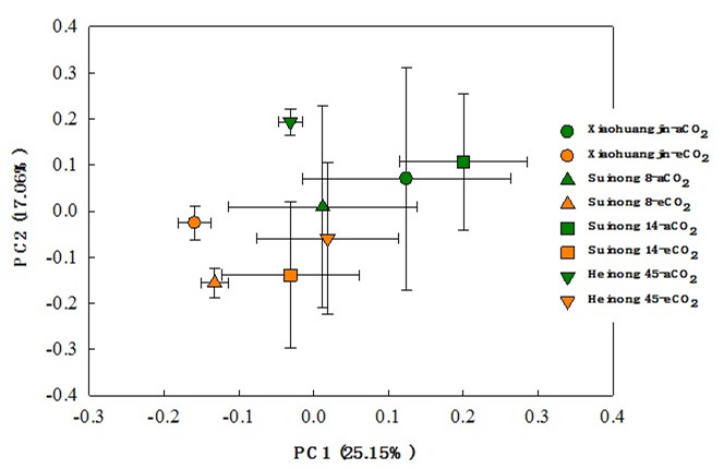 以CO2濃度升高為主要特征的全球氣候變化已經(jīng)對農(nóng)田生態(tài)系統(tǒng)產(chǎn)生重大影響,成為全球農(nóng)業(yè)可持續(xù)發(fā)展的嚴(yán)峻挑戰(zhàn)。CO2濃度升高影響植物生理代謝過程,導(dǎo)致植物根系分泌物的總量和化學(xué)組成發(fā)生改變,進(jìn)而可能影響土壤微生物群落結(jié)構(gòu)和生態(tài)功能。由于土壤微生物驅(qū)動碳氮循環(huán),參與土壤養(yǎng)分轉(zhuǎn)化,揭示CO2濃度升高條件下,根際土壤微生物的群落結(jié)構(gòu)及其與土壤農(nóng)化指標(biāo)的關(guān)系對土壤生產(chǎn)力可持續(xù)發(fā)展和提高農(nóng)業(yè)生產(chǎn)的氣候變化適應(yīng)性將產(chǎn)生重要意義。