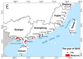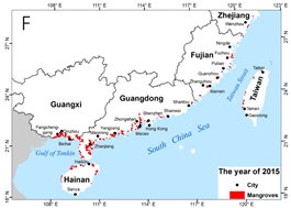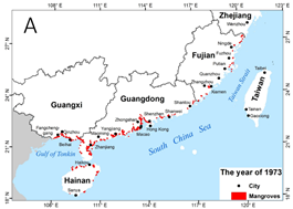 1973~2015年中國紅樹林分布變化