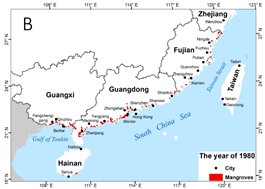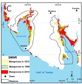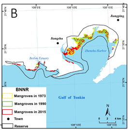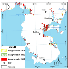 Jia M., Wang Z., Zhang Y.,Mao D., Wang C., 2018. Monitoring Loss and Recovery of Mangrove Forests during 42 years: The Achievements of Mangrove Conservation in China. International Journal of Applied Earth Observation and Geoinformation, 73, 535-545.