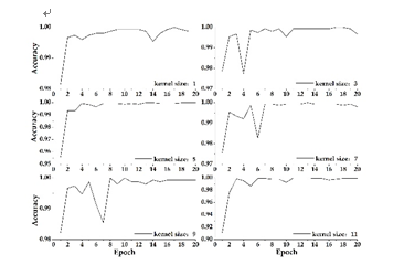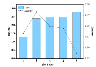 圖2 卷積核大小及卷積層數(shù)設(shè)置對(duì)深度學(xué)習(xí)算法精度及效率的影響