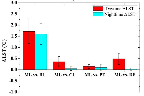 在總體上將導(dǎo)致地表溫度升高。其中沼澤濕地轉(zhuǎn)為建設(shè)用地能夠顯著增加白天和夜晚地表溫度,而沼澤濕地被開墾為農(nóng)田會對白天溫度及非生長季的夜晚溫度具有升溫的作用;但在植物生長季最旺盛的季節(jié),沼澤濕地轉(zhuǎn)為農(nóng)田能夠?qū)Π滋旌鸵雇淼乇頊囟绕鸬揭欢ǖ慕禍刈饔谩4送猓芯堪l(fā)現(xiàn)沼澤濕地轉(zhuǎn)換為旱田和水田對地表溫度的影響存在不同,尤其對地表溫度的冷效應(yīng)上存在明顯差異。在全球氣候變暖背景下,該研究對明確濕地變化對區(qū)域氣候變化的影響,以及預(yù)測未來氣候變化具有重要的意義。