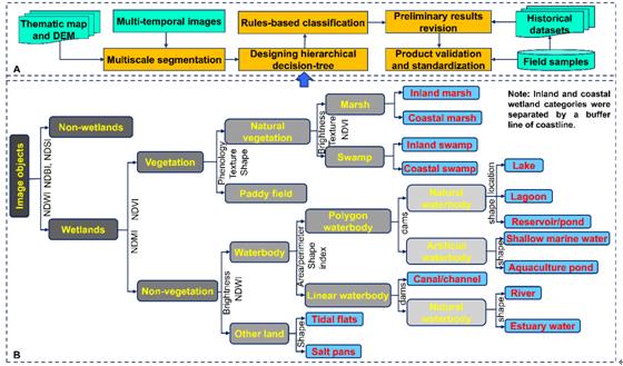 中國(guó)濕地遙感分類方法和分類流程框架圖