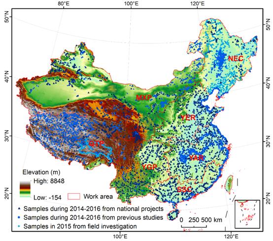 中國(guó)濕地遙感分類樣本空間分布圖