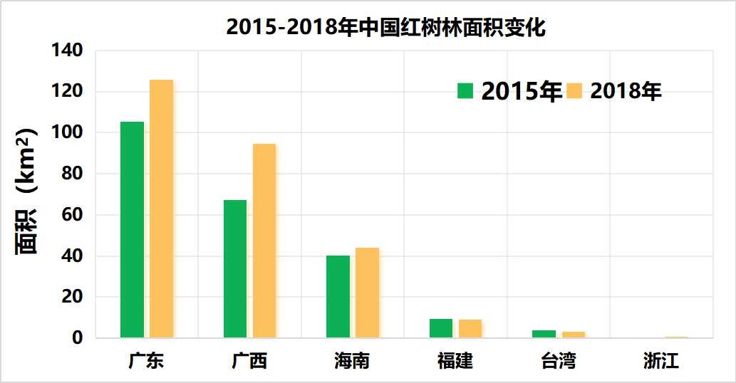 2015-2018年中國(guó)紅樹林面積變化