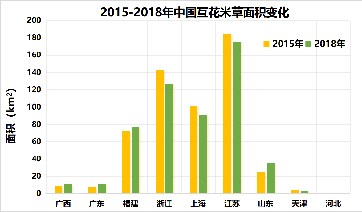 2015-2018年中國(guó)互花米草面積變化