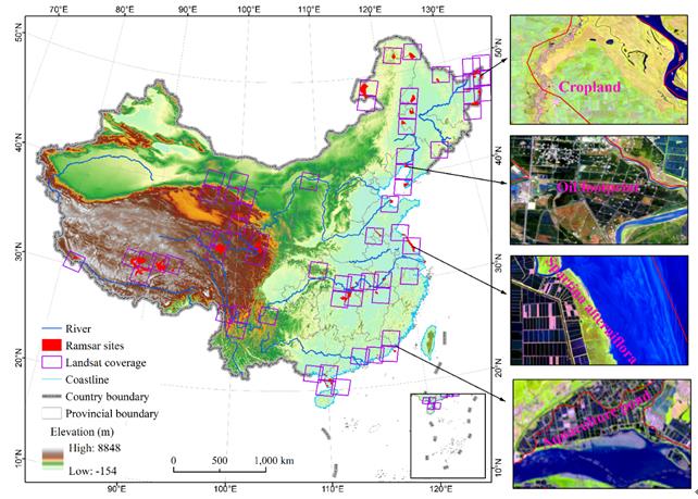 2021年,中國將首次承辦《國際濕地公約》締約方大會(huì)(第十四屆);與此同時(shí),中國在《濕地保護(hù)法》的制定方面有了重大進(jìn)展。在此背景下,深入解析中國國際重要濕地的保護(hù)成效,精確掌握國際重要濕地內(nèi)濕地和人為用地類型的變化數(shù)據(jù)信息,可有力支撐濕地保護(hù)與管理決策的制定和優(yōu)化,為我國濕地保護(hù)執(zhí)法和與濕地有關(guān)的可持續(xù)發(fā)展目標(biāo)的實(shí)現(xiàn)提供科學(xué)參考。