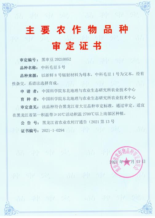 6月11日,由中國(guó)科學(xué)院東北地理與農(nóng)業(yè)生態(tài)研究所張秋英研究員研究團(tuán)隊(duì)選育的鮮食大豆品種“中科毛豆5號(hào)”(審定編號(hào):黑審豆20210052)順利通過(guò)黑龍江省農(nóng)作物品種審定。
