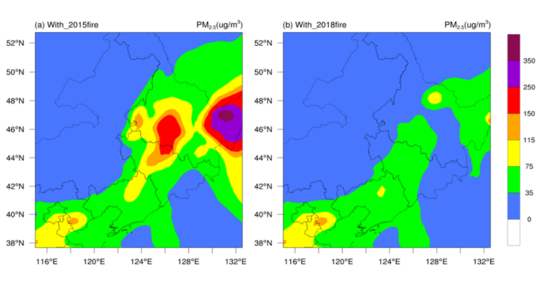 針對(duì)東北地區(qū)生物質(zhì)燃燒嚴(yán)重和霧霾污染頻發(fā)的問(wèn)題,開(kāi)展了生物質(zhì)燃燒的火點(diǎn)監(jiān)測(cè)與預(yù)測(cè)、污染物排放特征分析與清單構(gòu)建、大氣環(huán)境影響與評(píng)估等方面的系列研究。基于多源衛(wèi)星遙感數(shù)據(jù)開(kāi)發(fā)了一套生物質(zhì)燃燒源大氣污染物的近實(shí)時(shí)排放清單,實(shí)現(xiàn)了源清單和空氣質(zhì)量模式的無(wú)縫對(duì)接,滿足了空氣質(zhì)量預(yù)報(bào)預(yù)警模式對(duì)排放清單的本地化、高精度和動(dòng)態(tài)化的迫切需求。基于以上近實(shí)時(shí)排放清單并結(jié)合人為源清單和氣象數(shù)據(jù),采用空氣質(zhì)量預(yù)報(bào)預(yù)警模型WRF-CMAQ定量評(píng)估了東北地區(qū)生物質(zhì)露天燃燒及秸稈禁燒政策對(duì)區(qū)域大氣環(huán)境的影響。