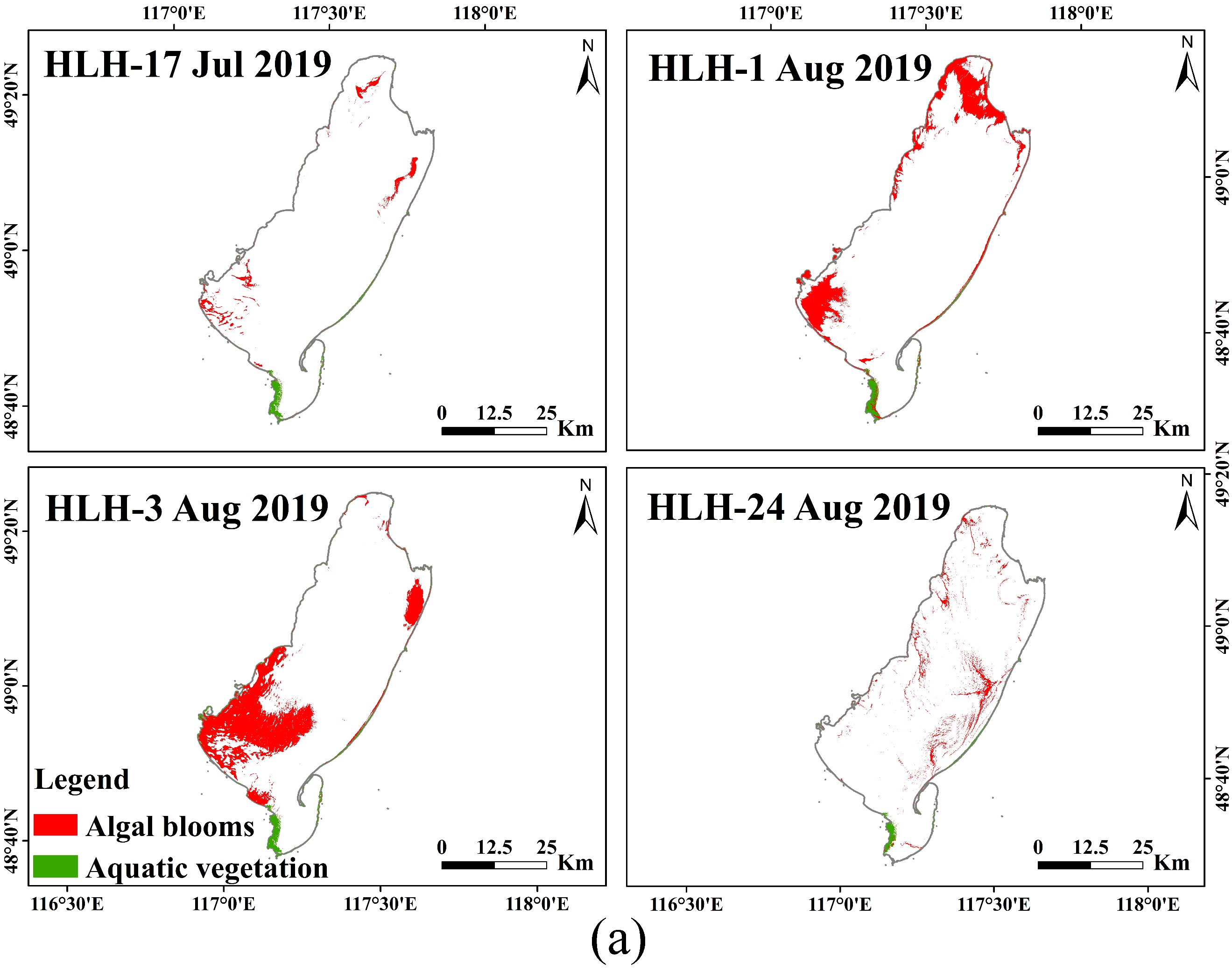 Jing Pu, Kaishan Song, Yunfeng Lv, Ge Liu, Chong Fang, Junbin Hou 1 and Zhidan Wen*. Distinguishing Algal Blooms from Aquatic Vegetation in Chinese Lakes Using Sentinel 2 Image. Remote Sensing. 2022, 14, 1988.
