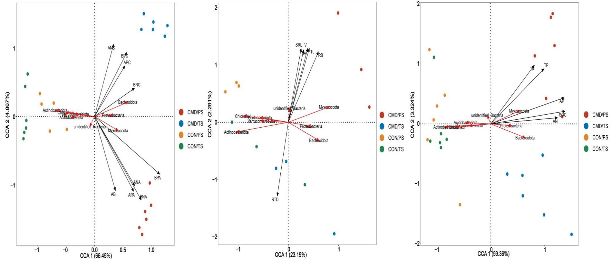 圖2冗余分析顯示細(xì)菌門水平群落組成與燕麥生物量,養(yǎng)分吸收和歸還的相關(guān)關(guān)系